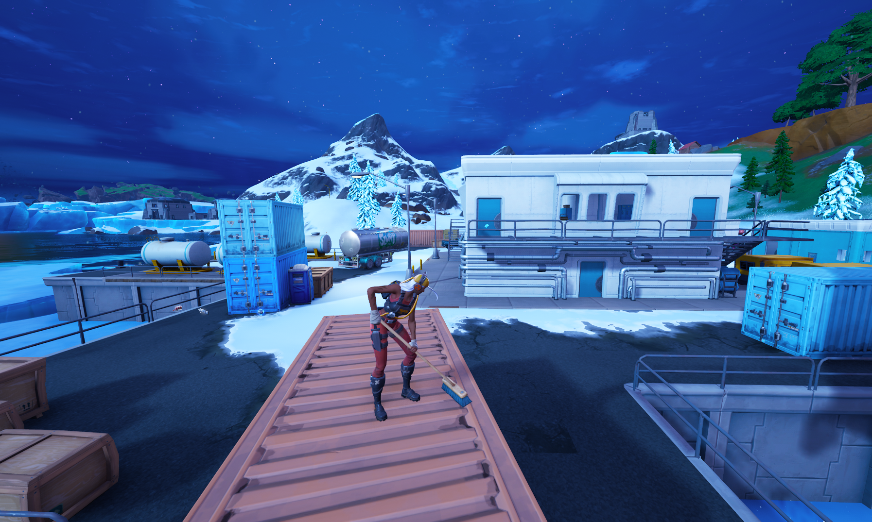 Northwest of Lonely Labs, Crude Harbor is a shipment dock that not only makes a great solo landing spot but has enough loot for your entire squad as well. With two Slurp trucks to land on, you can instantly start the game with full health and shield. You’ll also find 17 chests, a few coolers containing fast heals, vending and upgrade machines, and a few vehicle options to transport you or the whole squad to the next zone. Flying solo and would like an extra hand? You can hire the NPC who guards this landmark, Aura, in exchange for some gold. With recent updates, we now have more control over the NPC’s movements, making them a helpful tool for combat. Worried she will give away your location? Select the “wait” option on the command wheel, and Aura will stay put. Use her as a decoy by selecting the “move” command or “dismiss” her altogether if she doesn’t cooperate as you wish.