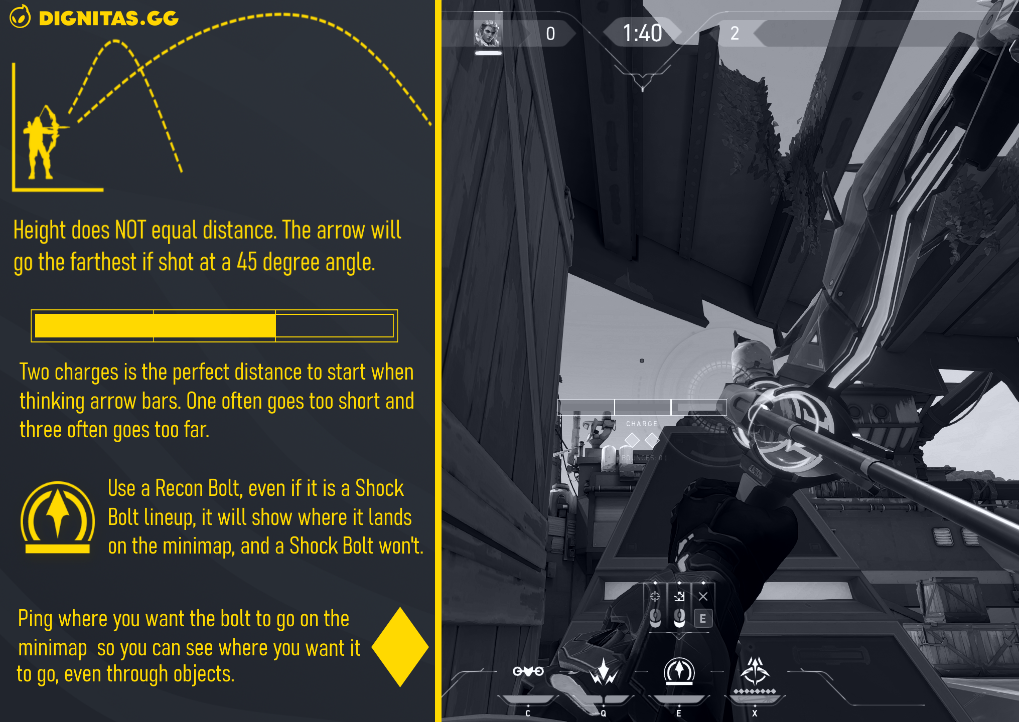 Ping on the map where you want your arrows to land, then use its indicator in-game to angle yourself towards the ping, so you do not have to guess what direction you want your arrow to go.