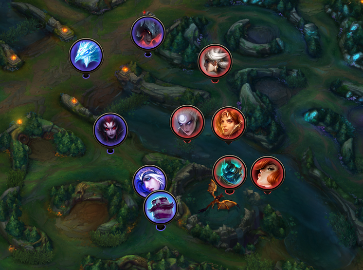 As a Mage, you have to always be aware of your defining weakness: mobility. While also being aware of what Champions on the enemy team can take advantage of that. In the above image, Red Team has gotten the angle on Blue Team. They’re in prime position to take the Dragon for free, while also being in position to punish the Blue Team should they approach carelessly.