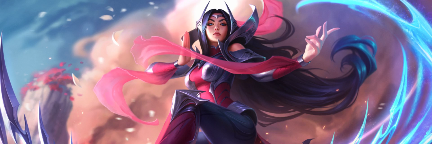 Irelia is a Top-Mid Lane Flex Pick Fighter that excels at diving onto priority targets. Her passive grants her stacking attack speed whenever she strikes an enemy with one of her abilities. Her Q is a dash that grants a stack of her passive and refreshes if the target is under the effects of her Bladesurge or if they die. Her W locks Irelia into place, swirling blades around her. During this time, she takes reduced damage and can direct the blades to strikes towards a start applying Bladesurge. Her E drops a blade at a target location, she can reactivate it again at another location and the blades will tether between the spots, stunning enemies caught between. Her ultimate hurls blades forward damaging and marking Champions hit, enemies that walk through the blade wall that surrounds them will be slowed and take damage.