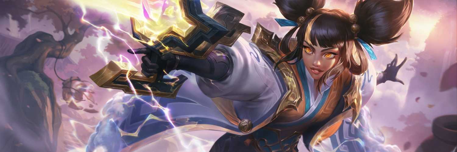 Voli is a Top and Jungle flex pick Bruiser who excels at diving turrets and playing aggressive. His passive causes his attacks to grant attack speed and eventually cleave lighting onto nearby enemies. His Q causes him to rush forward and stun the first target he hits. His W is a slash that applies on-hit effects and can be activated again for Voli to chomp down on them, healing himself and deal extra damage. His E calls down a storm at a target location dealing magic damage at that spot, slowing enemies caught and shielding Voli if he was at the location. Voli’s ultimate causes him to leap to a location, slowing and damaging everything beneath him while gaining bonus health. Enemy towers near this radius become temporarily disabled.