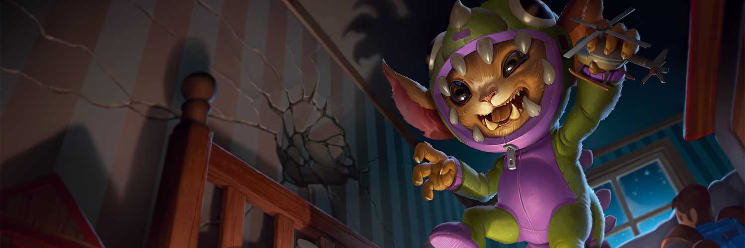 TK is a Top Lane and Support flex pick. In Top, he operates as an AP Bruiser dealing hefty in-lane burst and having high lockdown. At support he has the same burst, but uses his kit for utility and protection instead of lockdown. His passive applies stacks on the targets he autos. At max stacks he can hit the target to displace them or Q them to stun them. His Q is a tongue lick that applies his passive or stuns if at max as mentioned. His W causes TK to dive down and reappear at a location, knocking enemies up as he emerges. His E splits his health between gray and green health. Gray health can be converted to a shield or be allowed as a method of increased HP regen. His ultimate lets him outright eat a target enemy and ally alike either 100% locking them down or protecting them from enemies.