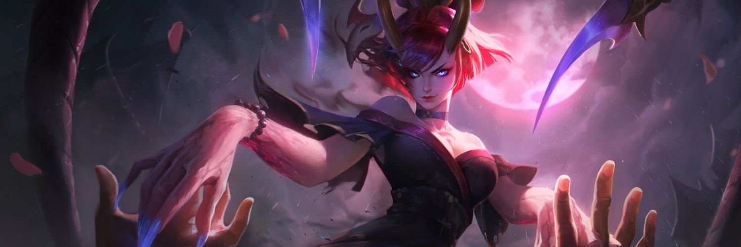 Kat is a Mid Lane Assassin that can build in a wide variety of ways to suit her team composition. Kat’s passive causes her abilities to reduce cooldowns dramatically if she’s involved in a takedown. If she picks up a dagger, she deals AOE damage around the dagger’s location. Kat’s Q is a point and click dagger throw that bounces off enemies and leaves the dagger in the ground behind the target. Kat’s W drops a dagger at her location and gives her a burst of move speed. Kat’s E causes her to blink onto a target - this can be an enemy, ally, or dagger. Kat’s ultimate causes her to channel and deal damage to the three nearest enemy Champions.