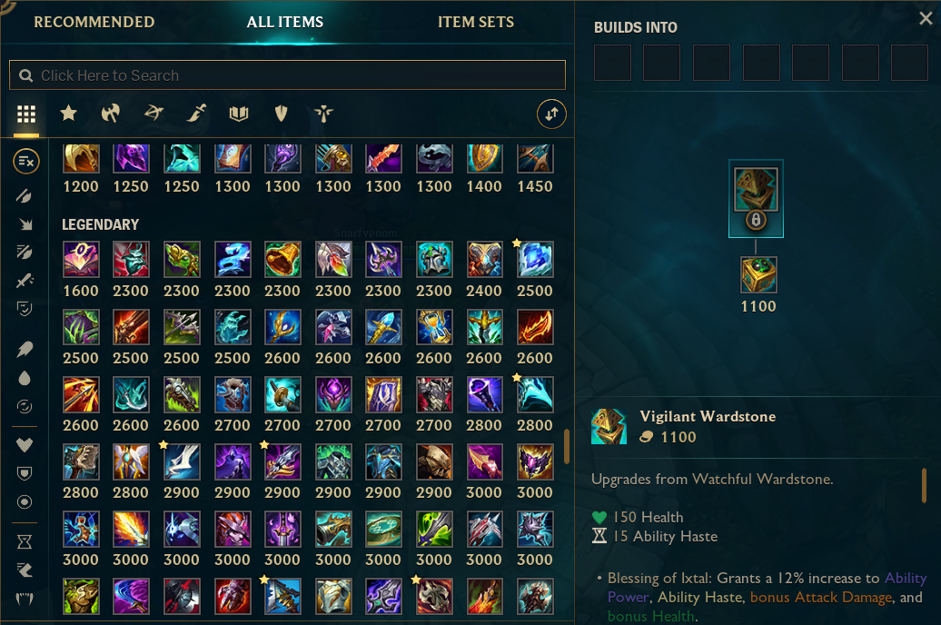 Once upgraded into Vigilant Wardstone there are some stats that are given to the player. The “Blessing of Ixtal” passive gives a 12% increase to bonus AD, bonus health, AP, and ability haste.