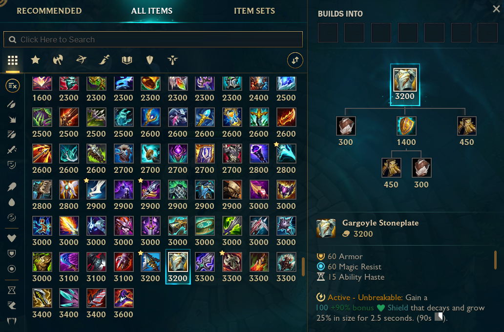 Gargoyle Stoneplate Stats: 60 Armor, 60 Magic Resistance, 15 Ability Haste