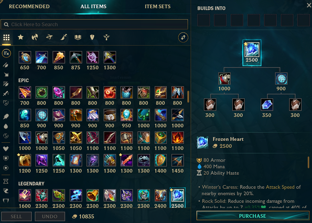 Frozen Heart Stats: 80 Armor, 400 Mana, 20 Ability Haste