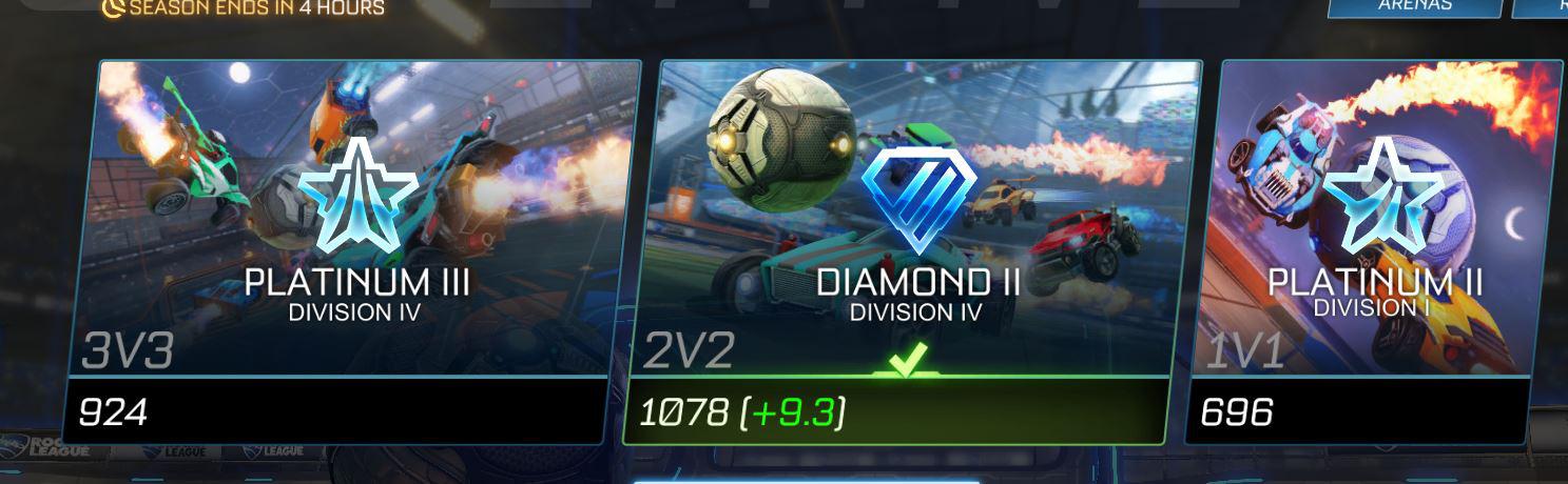 Once you are able to play ranked games, you must play ten games in one game mode to be assigned a rank for that mode. For example, if you want a 2v2 rank, play ten games of ranked 2v2 to be assigned a rank based on your results. As of now, there are six ranked playlists available at a time: 1v1, 2v2, 3v3, 3v3 Rumble, 2v2 Hoops, and either 3v3 Dropshot or Snow Day, which alternate each season.