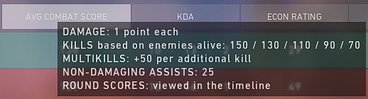 Assists also don’t scale with the kill, meaning that if a player gets an ace off of your flash, they would get a minimum of 1500 ACS for that round [each kill point stage + 50 for each additional kill + 150 damage to each enemy minimum: 150+130+110+90+70+(50*4)+(150*5) = 1500]. Compare that to the abysmal 125 points the player who assisted would get.