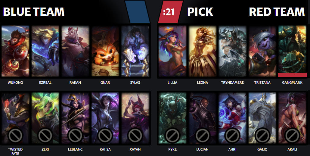 Based on the bans that occurred, you should have a priority list of what the best Champion options there are for each player on your team. Ideally, you don’t stray far away from the top five most comfortable Champions but do your best to draft a thematic that enhances your playstyle! I would highly recommend, using your first pick (or two on red side), to grab whatever you think is the strongest Champion you would want to play, and especially if the enemy team also has games played on it.