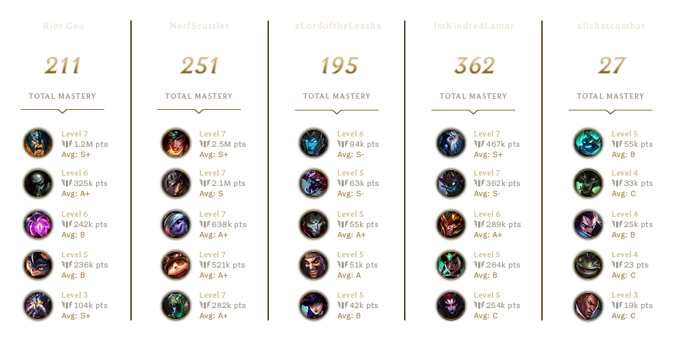 When you know what to ban from that player, start looking at any stats that stand out for the other players. Does the top laner play a lot of split-push? Does the bot laner only play Marksmen? If so, do they prioritize late-game hyper carries? Answering these questions will get you a feel for the type of players they are, and the priorities they have in their draft. It will take some time to start to make connections between your answers to these questions, and the right decisions to make in the draft, but with enough analysis, you’ll eventually get there.