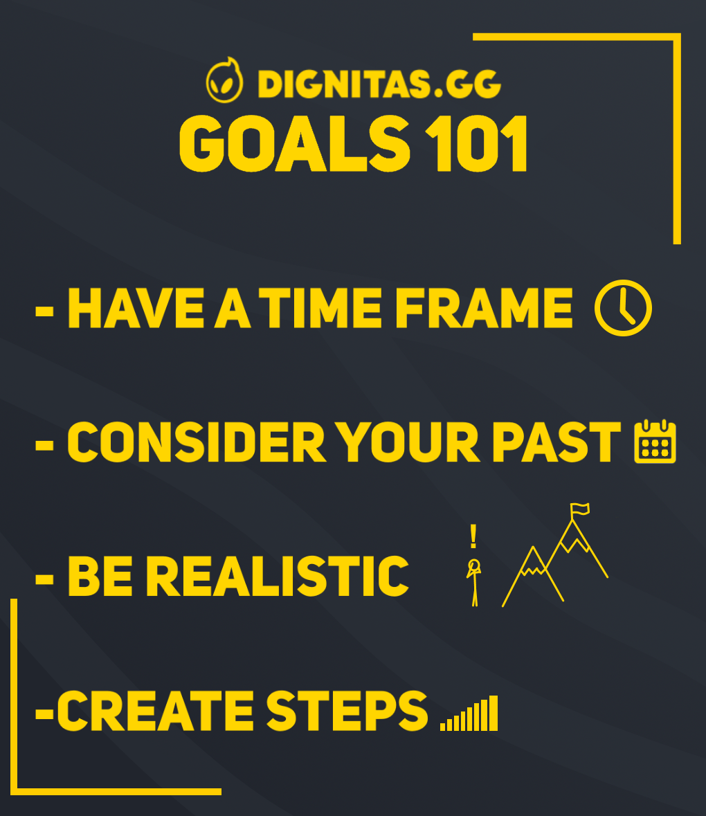 Your goal should have a time frame: Making a goal and having no deadline can lead to procrastination. Make sure the time frame is realistic and achievable, but don’t give yourself too much time. A good timeframe for a lot of goals is 2 or 3 months, and you should try and make your goals something that takes that long to do. If it is a goal that would take longer than that, break your goal down into steps that last 2 or 3 months. So set your goal to a VALORANT ranked Act, which usually lasts 2 and a half months to 3 months.